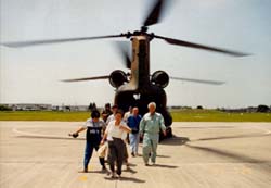 エンジンとローターから発する熱風を通り抜けて体験搭乗を終えた皆さん。霞ヶ浦から筑波学園都市の上空を通過し筑波山を手前に折り返す20分程の航行でした。