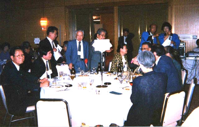 平成13年度の総会・懇親会は、諸先輩のご支援・ご指導及び後輩諸氏の賛同を得て、 200名の方々のご出席により例年通り盛況に開催することが出来ました。 昭和42年卒業生は、平成13年度の年次幹事として「二十一世紀猶ほ興る」の統一 テ ーマを掲げて、約1年間に亘り企画・立案・運営を担当してまいりましたが、皆様のご支 援・ご協力で大役を無事に終了することが出来ました。 皆様には、年次幹事に対するご不満・ご意見あるいはご声援もあるかと思いますが、 今後も当会合が盛大に継続できることを念願して、年次幹事の大役を終了させていた だきます。 会合当日の概要と記念の写真を掲載させていただきますので、当日を懐かしんでいた だければ幸甚です。 平成13年6月 東京支部年次幹事一同(S42年卒) |