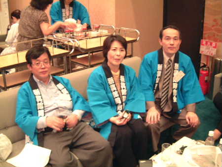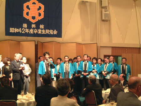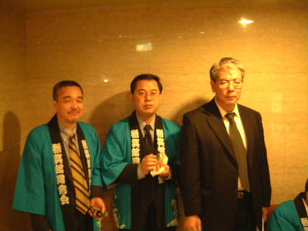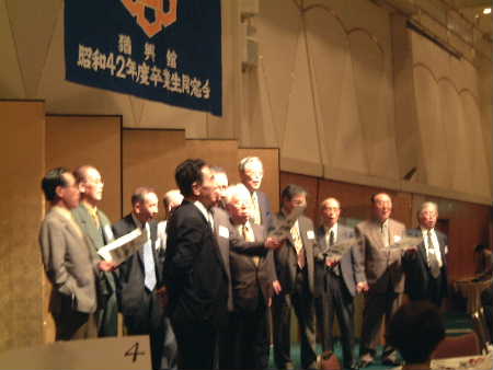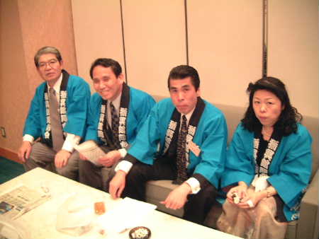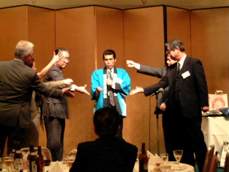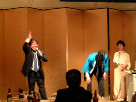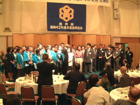 猶興館高校同窓会東京支部における平成14年度総会・懇親会は平成14年5月18日(土)、虎ノ門パストラルにて開催されました。いずれ年次幹事(43年卒)より開催模様については報告される予定ですがここに速報版としてお届けいたします。 数字をクリックすると画像が開きます。 ■ 年次幹事による準備模様 01 02 03 04 05 06 07 08 09 02の画像は26会の前田さん(26年卒)と年次幹事女性代表の柴本さん 06の画像は年次幹事代表の本山君、09の画像は橋本幹事長と昨年度の年次幹事代表の増山君です。 ■ 受付、物産コーナー 01 02 03 04 04の画像は会費納入受付で笑顔の女性幹事の皆さん ■ 総会 01 02(牟田部支部会長) 03(町田本部会長) 04(橋本幹事長) 05 06 07 08 06は平戸から駆け付けてくれた山本PTA会長 05と07は年次幹事と卒業年度を同じくする平戸市の井上さんと藤澤さん、元気いっぱいの地元情報を届けてくれました。平戸オランダ商館復元計画の募金のご協力をお願いいたします。詳しくはこちらをご覧下さい。 この日をもって支部会長は早田春三郎さん(23年卒)に引き継がれる事になりました。 牟田部会長には会の運営と発展にそして一昨年度の創立120周年記念事業に多大なご尽力を頂きありがとうございました。一部役員・幹事の改選もありましたが追って「役員・幹事会よりのお知らせ」にて報告致しますのでお待ち願います。 ■ 懇親会模様 01 02 03 04 05 06 07 08 09 10 11 12 01は司会の今浦君と今村さん 02〜05はマーカ・テンドーさんによるマジックショー。司会の今村さんとの二人羽織によるカードマジック 06と07は41年卒の市瀬、松本君による狂言、演目は「鴨の声」。庭に忍び込んだ盗人が鴨の鳴き声をして逃れようとするが最後は池に落ちてしまうと云う面白い狂言でした。何でも松本君が市瀬君に弟子入りしてのお披露目とか。 08と09は彩(AYA)の皆さんによるベリーダンス 11と12はご寄贈頂いた品々をジャンケンで、、、、飛び入りでジャンケンのご指導も頂きました。 PROJECTION 会場内の大スクリーンでは地元より寄せられた情報や猶興館の歴史に纏わる情報を映像で流しました。前日まで徹夜をしてデジタル化してくれた安西君です。資料をご提供頂いた皆さん、ありがとうございました。 ■ 校歌斉唱 01 02 03 04 05 06 07 08 09 10 11 01〜04は中学猶興館校歌を朗々と斉唱する大先輩の方々です。 05〜08は平戸高等女学校校歌。旧制女学校は平成15年に創立100周年を迎えます。昭和の動乱期を力強く生き抜いて来たその証として創立記念事業が計画されています。皆さんで応援して成功をおさめましょう。 09から11は参加者全員で猶興館高校校歌を斉唱しました。 ■ 年次幹事引式 01 02 03 04 恒例のハッピと校章を43年卒から44年卒の皆さんへ引き継ぎます。 幾多の困難を乗り越えて今日のイベントを大成功におさめた年次幹事(43年卒)の皆さん、ご苦労様でした。平戸をはじめ他支部から応援に駆け付けてくれた皆さんと今日(19日)は横浜見物を兼ねたご苦労さん会と聞いておりますがどうぞゆっくり羽を伸ばして昔話に花を咲かせて下さい。 44年卒の皆さん、来年の同窓会、宜しくお願いいたします。 お願い:掲載に不都合のある記事、画像などありましたらこちらまでご連絡願います。 |