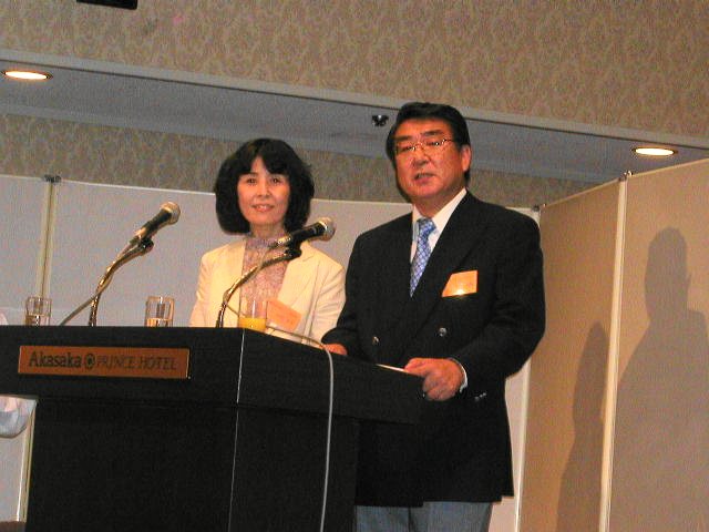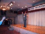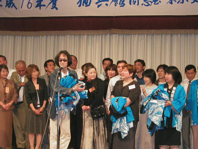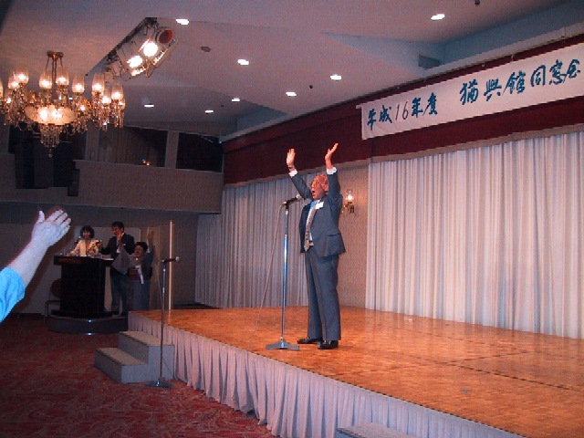 本年度の年次幹事から次年度幹事へ「猶興はっぴ」が引き継がれ、次年度幹事のお披露目と代表の挨拶です。
