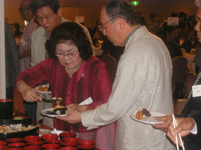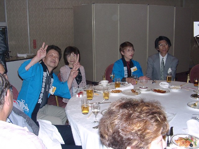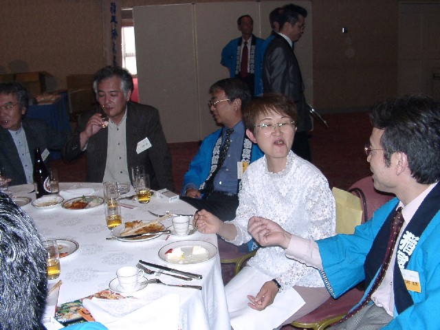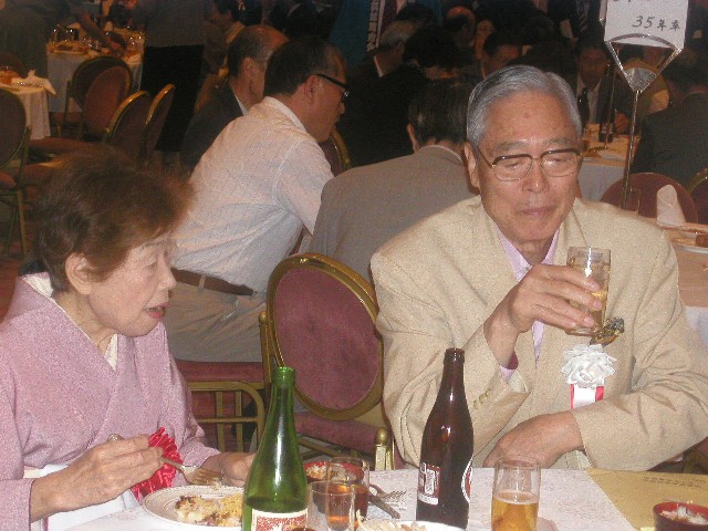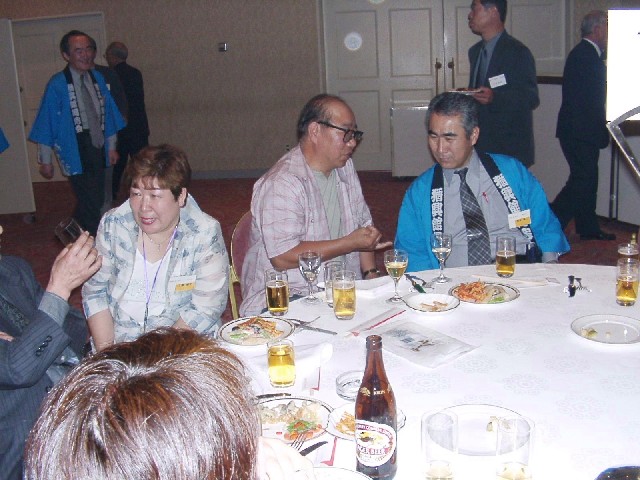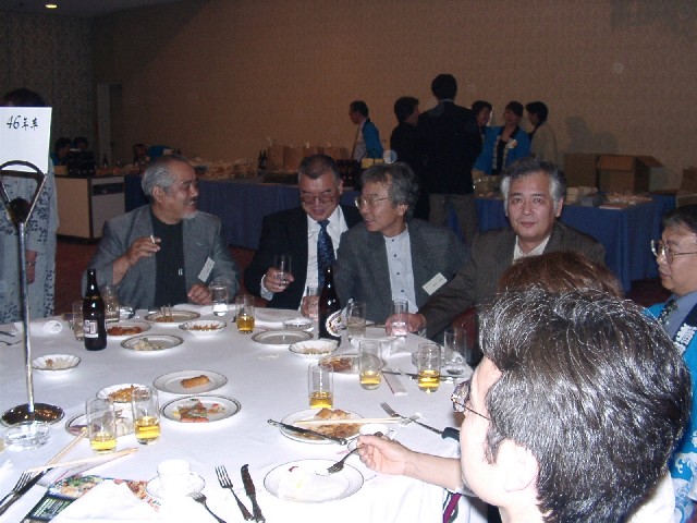 | 39-46 年次幹事のテーブル 遠く故郷より駆け付けてくれた仲間達。会の運営や進行を見つめつつ懐かしい話に花が咲きます。 |