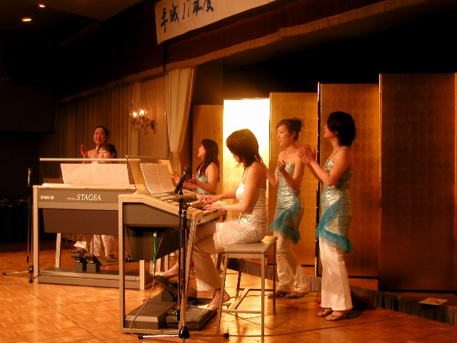 | 47 スパイシーの末永さん(H9年卒) 48-49 スパイシーの演奏曲目はSPICE BAR(クリック)をご覧下さい。 50-52 壇上では昭和の大先輩と平成の後輩がマ○ケ○サンバで盛り上がります。 |
