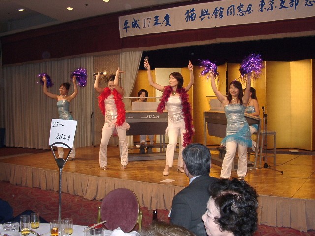 | 53-56 会場にみなぎる若さと華やかさ 平成年度卒の皆さん 君達の参加で会の平均年齢は若返り、会長のオデ○は益々光り輝いているようですね。 |