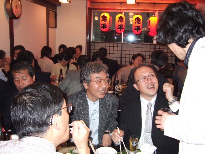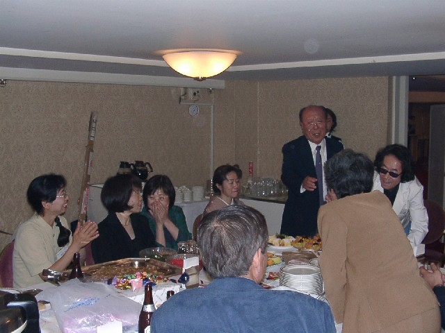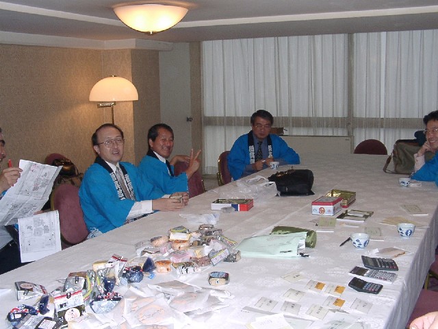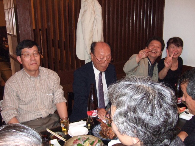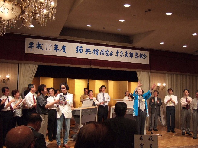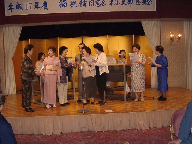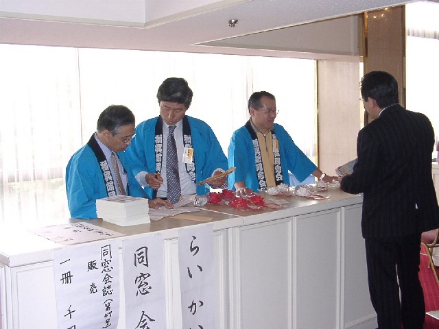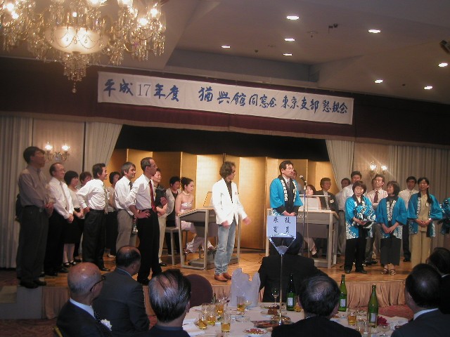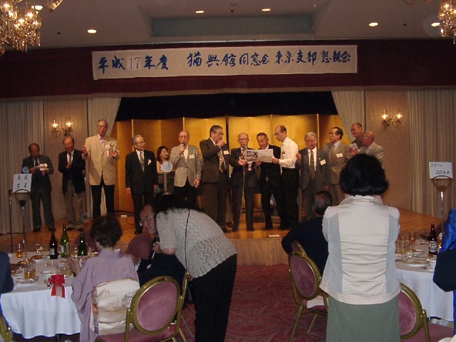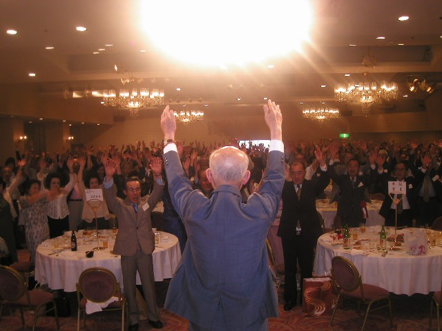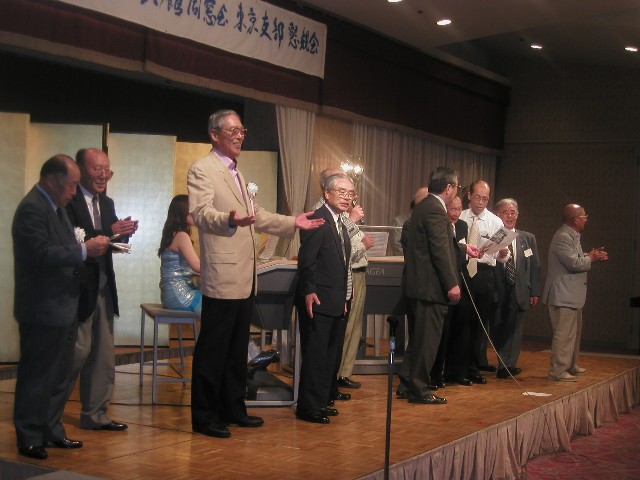 | 70 年次幹事(46年卒)一同です。 ★至上の善と自由と愛の〜♪ 長いようで短かった一年、心細いスタート(←クリック年次幹事会)でしたが会を重ねるたびに力強い仲間が集まり、この一年そして同窓会の当日は愉快で楽しい時間が過ごせました。 この度のご報告では諸先輩方にお許しをいただき当日の各コーナーでの準備模様や控え室での様子をご紹介させていただきます。更に終了後の反省会、二次会、三次会のスナップもお届けしますのでご笑覧下さい。 |