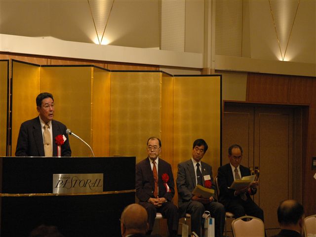 05 左より松浦高校同窓会関東支部会長の白石さん、猶興館元教諭安河内先生、中野同窓会会長 06 中野会長挨拶 写真右より平戸高校同窓会首都圏支部会長の加藤さん、久原校長、松浦家松浦章さん 07 久原校長挨拶 |