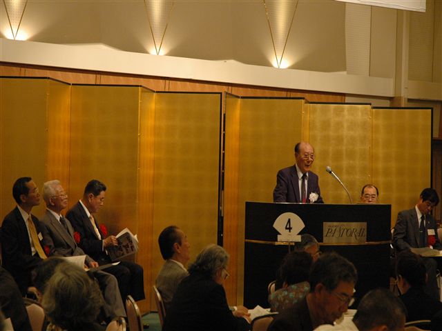 01 前田会長挨拶 02 役員紹介 左より大崎監事(37年卒)吉本会計幹事(36年卒)伊崎幹事長(35年卒)青木副会長(34年卒)前田会長(26年卒) 03 伊崎幹事長による会務報告 04 太田前会計幹事による会計報告 |