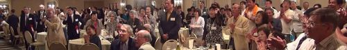 恒例の猶興館東京同窓会「平成25年度総会・懇親会」を第一ホテル東京で平成25年6月8日(土)開催 致しました。 本年は、母校小林校長先生を交えた、引き締まった総会となりました。 やはり故郷を離れた卒業生は、母校の近況を知る事は無類の喜びを感じるものです。 又、何より嬉しかった事は、お子様ずれの姿が有った事です、其れも男性、正しくイクメン世代の到来が我が 同窓会に存在したのです。 厳粛な中にも和やかな総会を終え、いよいよ懇親会! 年幹事の若いパワフルなサプライズ続出のイベントは圧巻でした! 乾杯前、八十歳をゆうに超えられた大先輩(女学校21年卒)が祝の日舞「鶴亀」をご披露なされたのを皮切りに、「卒業生による卒業生のためのイベント」が繰り広げられたのです。 進行するにつれ会場全体の一体感は増し、「平戸検定クイズ」でピークを迎え、会場全体が唸りを発するような 興奮は、今までに体験した事が無い盛り上がりでした。正しくは鳥肌が立つ思いがしたのです。 この一体感は来年の「総会・懇親会」の出席率アップに繋がるものと確信致します。 |