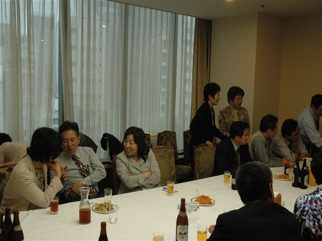 | 終わってみると懇親会は、「あっと」いう間の2時間30分でした。 休憩・食事を取られずに頑張られた皆さんご苦労さまでした。どうぞ、一服してください! |