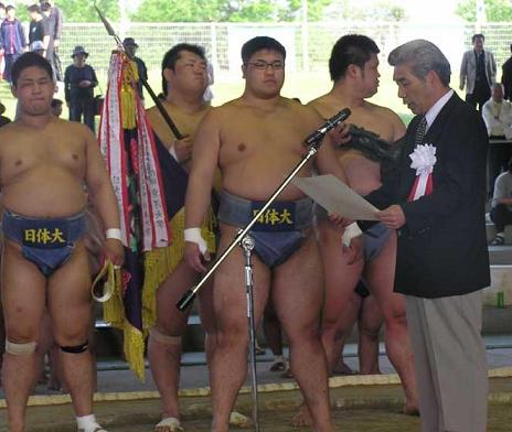 ![]() 閉会式 会長挨拶 健闘した日体大相撲部の勇姿 |