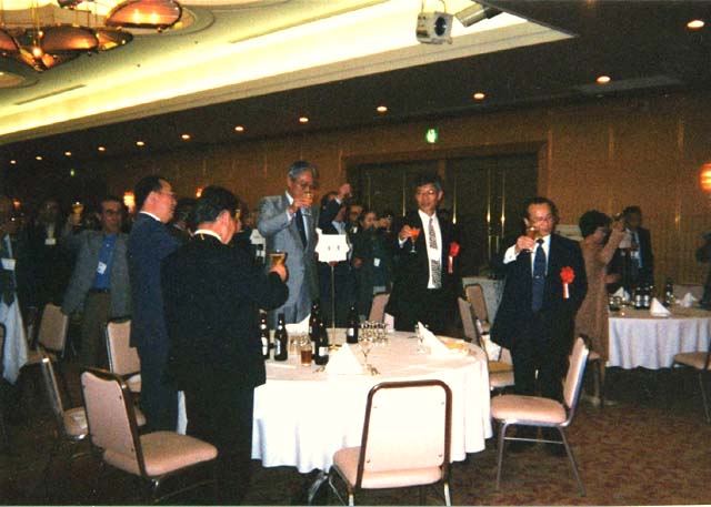 平成13年度の総会・懇親会は、諸先輩のご支援・ご指導及び後輩諸氏の賛同を得て、 200名の方々のご出席により例年通り盛況に開催することが出来ました。 昭和42年卒業生は、平成13年度の年次幹事として「二十一世紀猶ほ興る」の統一 テ ーマを掲げて、約1年間に亘り企画・立案・運営を担当してまいりましたが、皆様のご支 援・ご協力で大役を無事に終了することが出来ました。 皆様には、年次幹事に対するご不満・ご意見あるいはご声援もあるかと思いますが、 今後も当会合が盛大に継続できることを念願して、年次幹事の大役を終了させていた だきます。 会合当日の概要と記念の写真を掲載させていただきますので、当日を懐かしんでいた だければ幸甚です。 平成13年6月 東京支部年次幹事一同(S42年卒) |