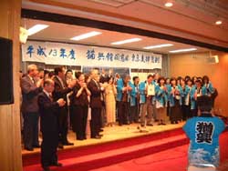 ![]() 参加者全員による校歌斉唱。 伴奏は創立120周年記念CDを採用しました。 |
