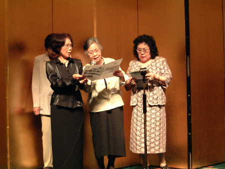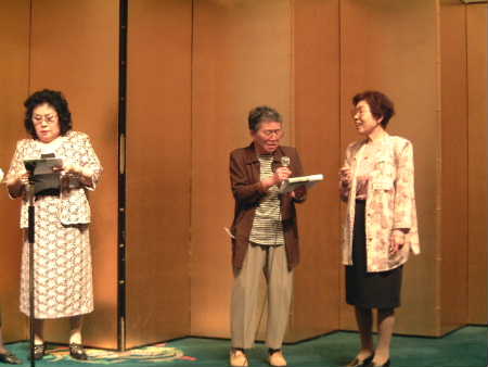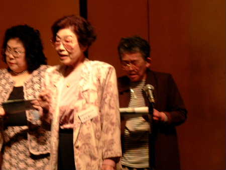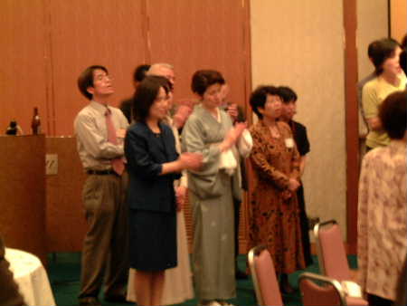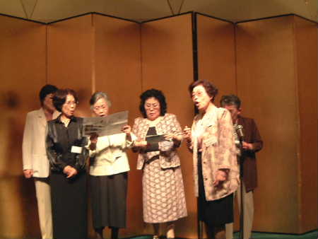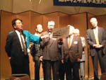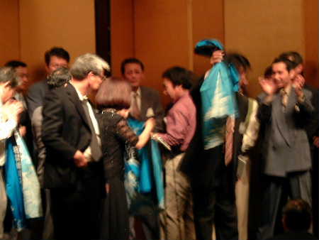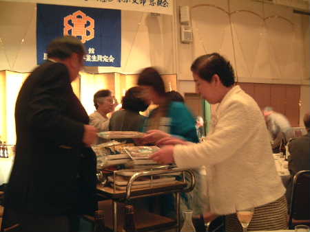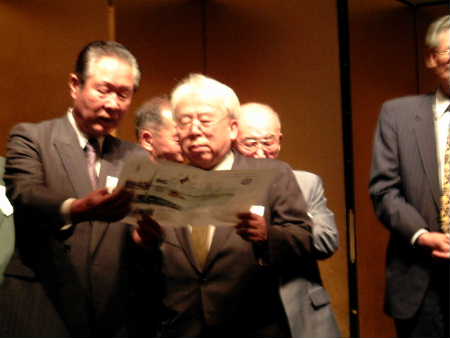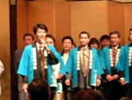 猶興館高校同窓会東京支部における平成14年度総会・懇親会は平成14年5月18日(土)、虎ノ門パストラルにて開催されました。いずれ年次幹事(43年卒)より開催模様については報告される予定ですがここに速報版としてお届けいたします。 数字をクリックすると画像が開きます。 ■ 年次幹事による準備模様 01 02 03 04 05 06 07 08 09 02の画像は26会の前田さん(26年卒)と年次幹事女性代表の柴本さん 06の画像は年次幹事代表の本山君、09の画像は橋本幹事長と昨年度の年次幹事代表の増山君です。 ■ 受付、物産コーナー 01 02 03 04 04の画像は会費納入受付で笑顔の女性幹事の皆さん ■ 総会 01 02(牟田部支部会長) 03(町田本部会長) 04(橋本幹事長) 05 06 07 08 06は平戸から駆け付けてくれた山本PTA会長 05と07は年次幹事と卒業年度を同じくする平戸市の井上さんと藤澤さん、元気いっぱいの地元情報を届けてくれました。平戸オランダ商館復元計画の募金のご協力をお願いいたします。詳しくはこちらをご覧下さい。 この日をもって支部会長は早田春三郎さん(23年卒)に引き継がれる事になりました。 牟田部会長には会の運営と発展にそして一昨年度の創立120周年記念事業に多大なご尽力を頂きありがとうございました。一部役員・幹事の改選もありましたが追って「役員・幹事会よりのお知らせ」にて報告致しますのでお待ち願います。 ■ 懇親会模様 01 02 03 04 05 06 07 08 09 10 11 12 01は司会の今浦君と今村さん 02〜05はマーカ・テンドーさんによるマジックショー。司会の今村さんとの二人羽織によるカードマジック 06と07は41年卒の市瀬、松本君による狂言、演目は「鴨の声」。庭に忍び込んだ盗人が鴨の鳴き声をして逃れようとするが最後は池に落ちてしまうと云う面白い狂言でした。何でも松本君が市瀬君に弟子入りしてのお披露目とか。 08と09は彩(AYA)の皆さんによるベリーダンス 11と12はご寄贈頂いた品々をジャンケンで、、、、飛び入りでジャンケンのご指導も頂きました。 PROJECTION 会場内の大スクリーンでは地元より寄せられた情報や猶興館の歴史に纏わる情報を映像で流しました。前日まで徹夜をしてデジタル化してくれた安西君です。資料をご提供頂いた皆さん、ありがとうございました。 ■ 校歌斉唱 01 02 03 04 05 06 07 08 09 10 11 01〜04は中学猶興館校歌を朗々と斉唱する大先輩の方々です。 05〜08は平戸高等女学校校歌。旧制女学校は平成15年に創立100周年を迎えます。昭和の動乱期を力強く生き抜いて来たその証として創立記念事業が計画されています。皆さんで応援して成功をおさめましょう。 09から11は参加者全員で猶興館高校校歌を斉唱しました。 ■ 年次幹事引式 01 02 03 04 恒例のハッピと校章を43年卒から44年卒の皆さんへ引き継ぎます。 幾多の困難を乗り越えて今日のイベントを大成功におさめた年次幹事(43年卒)の皆さん、ご苦労様でした。平戸をはじめ他支部から応援に駆け付けてくれた皆さんと今日(19日)は横浜見物を兼ねたご苦労さん会と聞いておりますがどうぞゆっくり羽を伸ばして昔話に花を咲かせて下さい。 44年卒の皆さん、来年の同窓会、宜しくお願いいたします。 お願い:掲載に不都合のある記事、画像などありましたらこちらまでご連絡願います。 |