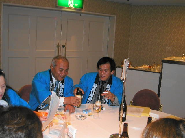 19)平戸から応援に駆けつけた福田社長(右から二人目s45年卒福田酒蔵)と同郷の松瀬年次幹事
