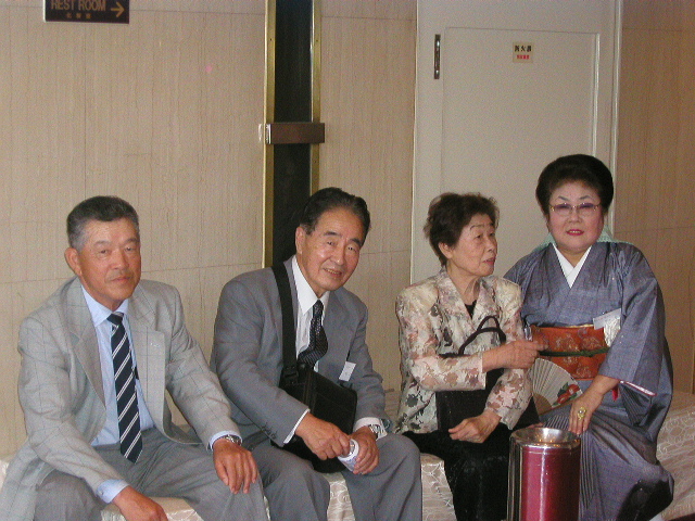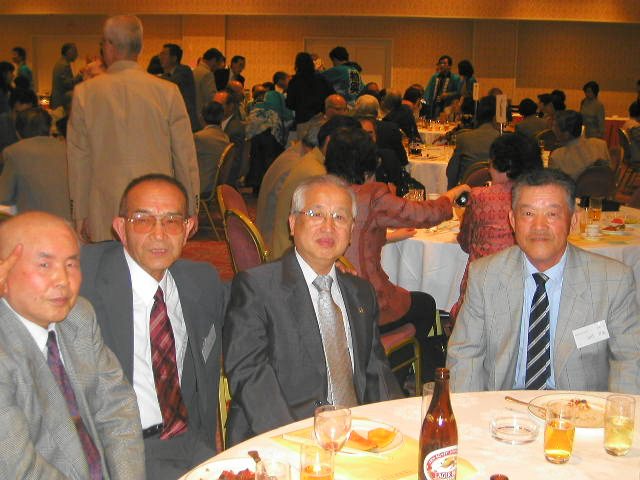 39)開会前の一時を過ごす田中先輩(s30年卒)と牟田部元会長、町田本部会長、清永副会長の皆さん、田中先輩は雷海の特集記事「マグロ漁船物語」に登場された方です。