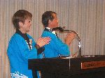| 47 スパイシーの末永さん(H9年卒) 48-49 スパイシーの演奏曲目はSPICE BAR(クリック)をご覧下さい。 50-52 壇上では昭和の大先輩と平成の後輩がマ○ケ○サンバで盛り上がります。 |