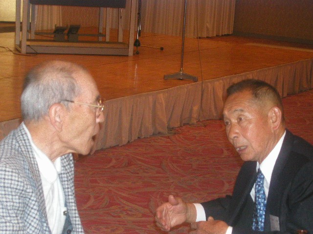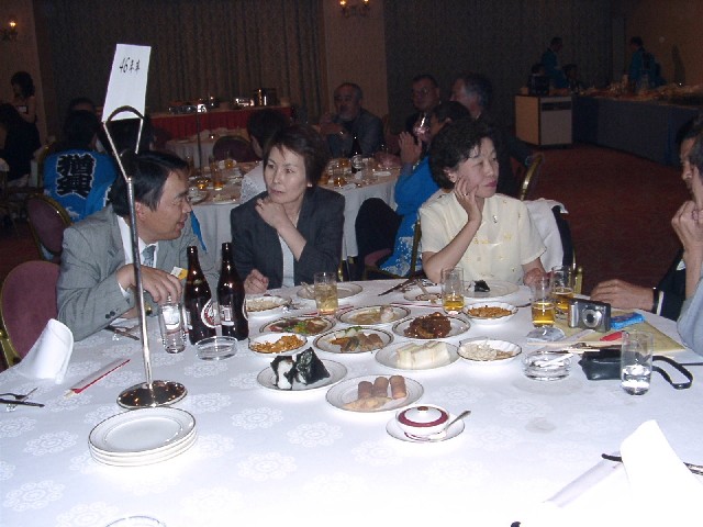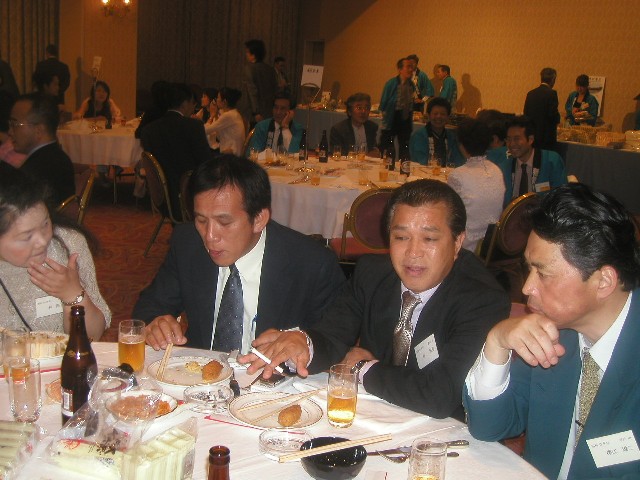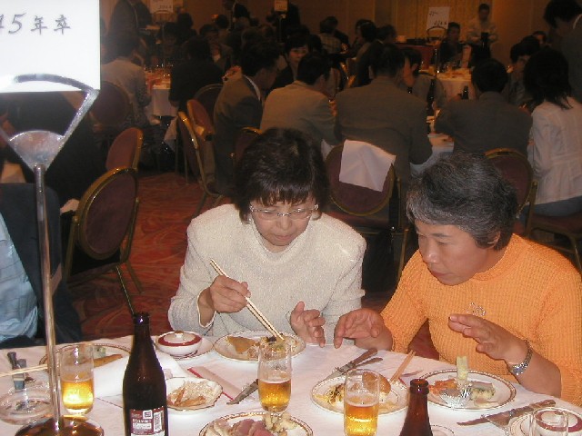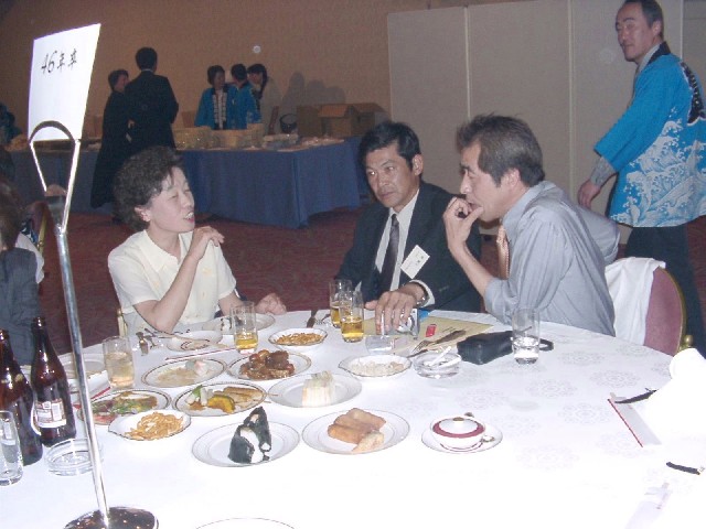 | 39-46 年次幹事のテーブル 遠く故郷より駆け付けてくれた仲間達。会の運営や進行を見つめつつ懐かしい話に花が咲きます。 |