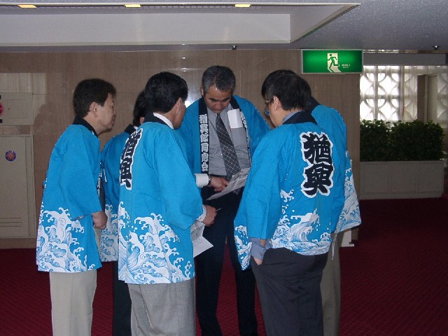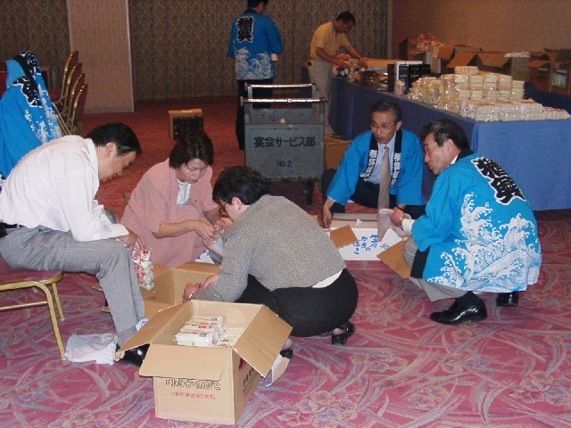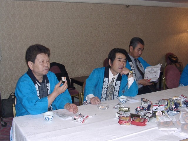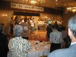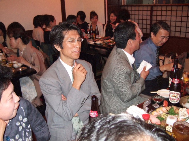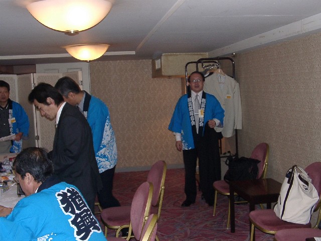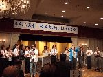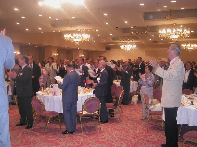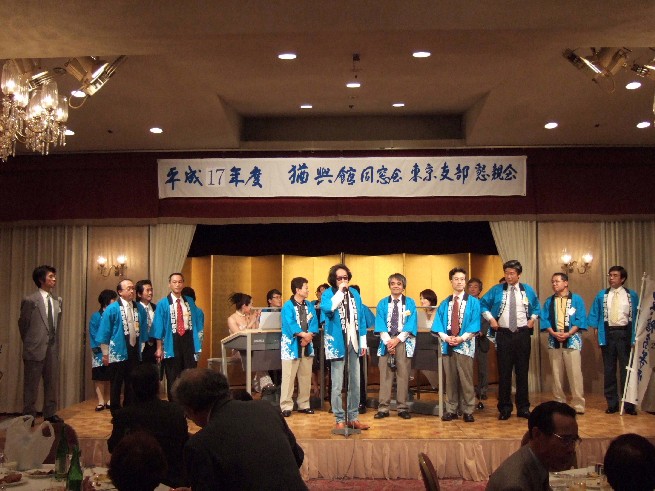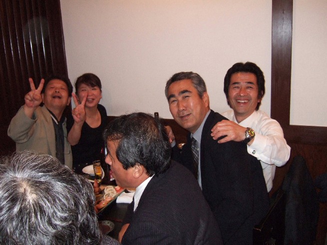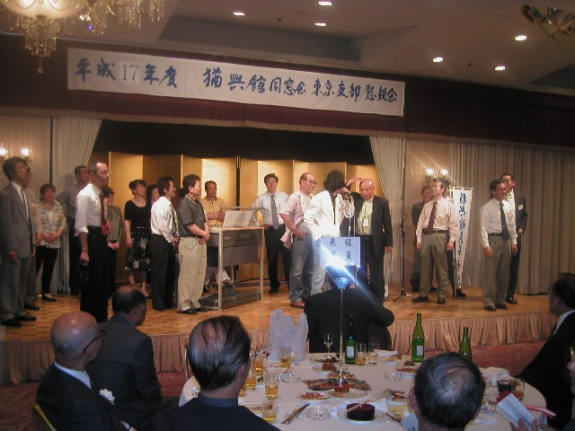 | 70 年次幹事(46年卒)一同です。 ★至上の善と自由と愛の〜♪ 長いようで短かった一年、心細いスタート(←クリック年次幹事会)でしたが会を重ねるたびに力強い仲間が集まり、この一年そして同窓会の当日は愉快で楽しい時間が過ごせました。 この度のご報告では諸先輩方にお許しをいただき当日の各コーナーでの準備模様や控え室での様子をご紹介させていただきます。更に終了後の反省会、二次会、三次会のスナップもお届けしますのでご笑覧下さい。 |