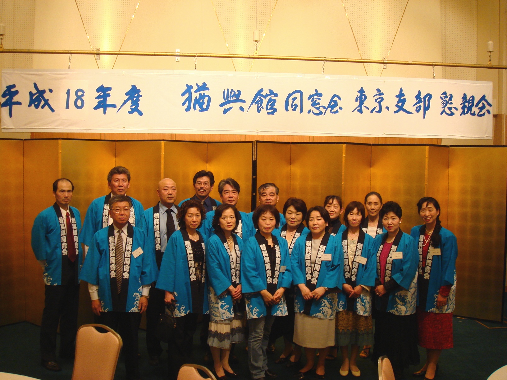 平成18年5月20日開催の東京支部同窓会に於いて47年卒当番幹事は、法被に着替えて笑顔で同窓生の皆様をお迎えしました。 また、諸先輩方はじめ、平戸市役所、長崎県人クラブ、出島厨房、居酒屋 鬼平等の色々な方にご協力いただきながら懇親会を無事に終わりましたことを感謝します。 |
