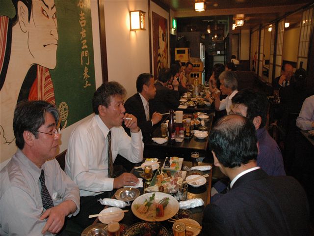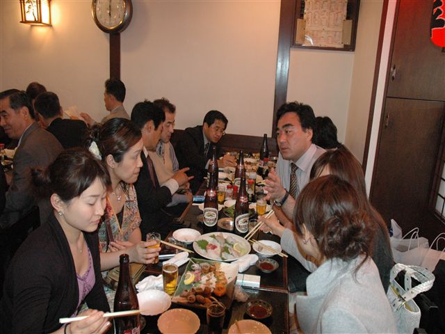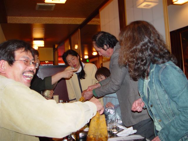 | 終わってみると懇親会は、「あっと」いう間の2時間30分でした。 休憩・食事を取られずに頑張られた皆さんご苦労さまでした。どうぞ、一服してください! |